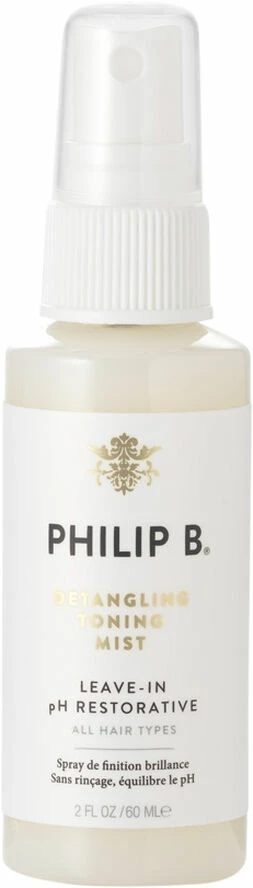 PHILIP B® pH Restorative Toning Mist styrkende toner, der reder filtret hår ud og ikke skal skylles ud. Denne superlette toner justerer vandets pH-værdi, så hårets yderste lag kan lukke helt tæt og dit hår efterlades glat og nemt at rede ud, skinnende, lækkert og med en velplejet finish. Med æblecider eddike som et naturligt astringerende og pH-afbalancerende middel, og med lette essentielle olier reder PHILIP B® pH Restorative Toning Mist filtret hår ud, glatter kruset hår og jordforbinder statisk hår, mens det øger hårets glans og efterlader håret med en frisk og smuk finish. En ultralækker opfriskende Toning Mist, der kan bruges når som helst.