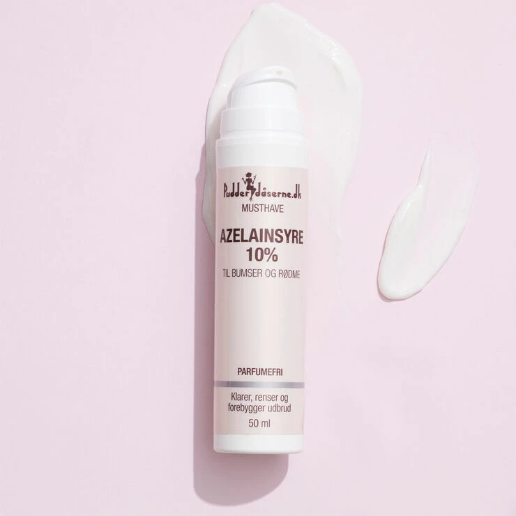 AZELAINSYRE 10% er særligt velegnet til dig, der døjer med uren hud, udbrud af rødme, røde knopper eller bumser blandt andet omkring mund, kæbe og hage. Den både forebygger og beskytter huden. Dermed bidrager den til at stoppe nye udbrud og reducere udseendet af de misfarvninger og ar, der for eksempel opstår efter bumser og akne.