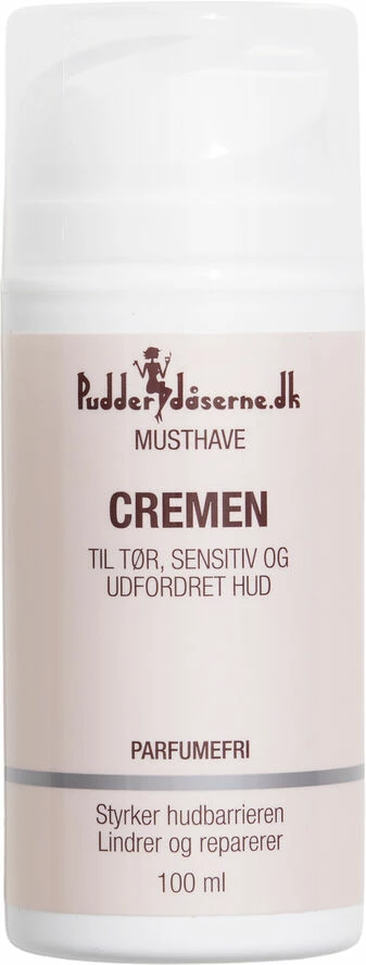 CREMEN til tør hud virker på tre måder, den: – Genskaber tabt fugtbalance: Et kompleks af blandt andet trehalose, carbamid, hyaluronsyre og sukkerstoffer binder væske i huden og genskaber fugtbalancen. – Genopfylder lipider: I CREMEN til tør hud har vi valgt en kombination af korte og lange fedtsyrer, der efterligner hudens egen fedtsammensætning: De korte fedtsyrer giver en let, luksuriøs og blød følelse på huden, da den smelter ved kropstemeratur. Det giver samtidig lindring til sensitiv hud. De lange: Reparerer og genopretter hudbarrieren. – Lindrer ubehag: CREMEN til tør hud indeholder beroligende aktiver, der hurtigt lindrer svie, kløe og den brændende fornemmelse, der kan følge med tør hud.