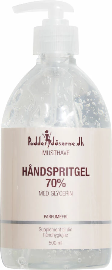 Pudderdåserne.dk udvider deres serie med HÅNDSPRIT 70%. Produktet indeholder bl.a. glycerin for at undgå udtørring på huden. HÅNDSPRIT 70% er uden parfume.