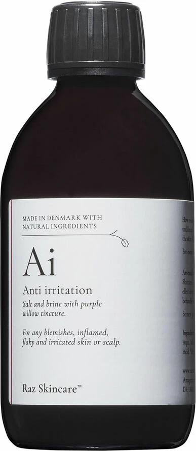 Ai Anti Irritation virker mod alle former for hudirritationer og er effektiv i behandling af eksem, ekstrem tør hud, acne, skæl og psoriasis. Produktet er inspireret af vikingernes saltbade og har en højere koncentration af virkestoffer end Det Døde Hav. Baseret på saltsydelage fra Læsø, samt purpurpil fyldt med helende salicylsyre. Anbefales af både Psoriasis foreningen og Lungeforeningen til behandling af hudirritationer.