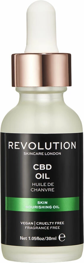 Nærende olie til huden, som hjælper med at berolige huden. Mød vores yndlings superingrediens! Revolution Skincare Skin Nourishing Oil er lavet med CBD olie eller cannabidiol (et ekstrakt fra blomster og blade af ikke-narkotika hamp). Denne berømte olie vil ikke køle dig ud, men det vil hjælpe med at berolige huden, der er tilbøjelig til tørhed og følsomhed med sine ultraværende egenskaber og høje koncentration af rige fedtsyrer. Sådan bruges produktet: Massér et par dråber i huden efter vandbaserede serum.