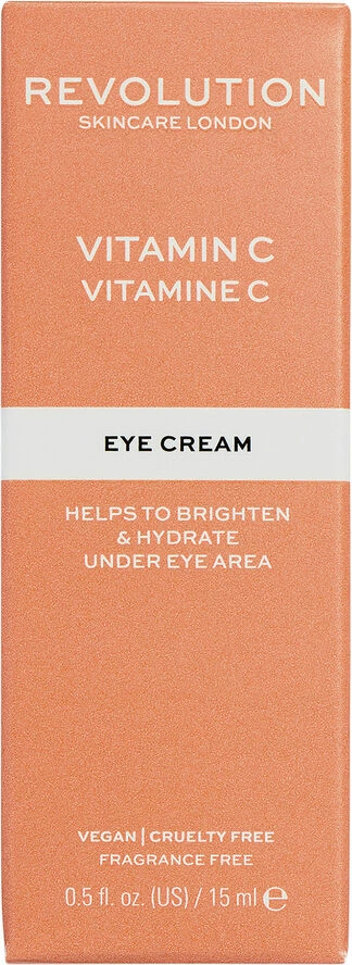 Glød starter indefra. Afslør et lysere, mere strålende område under øjnene med Revolution Skincares Vitamin C øjencreme. Denne fugtighedscreme under øjnene er formuleret med C-vitamin, kendt for sine glød-boostende evner, og hjælper med at lysne og fugte. Med avocadoolie og squalane til at hjælpe med at nære, Niacinamid til at hjælpe med at udjævne og lysne hudtonen og reducere forekomsten af mørke rande, hyaluronsyre til at fugte og glycerin til at binde vand til huden for at holde den fugtet. Naturlig duft. Sådan bruges: For de bedste resultater påføres fugtighedscreme under øjnene forsigtigt med fingerspidsen langs orbitalknoglen uden at trække i huden. Forsigtig: Afbryd brugen, hvis der opstår rødme eller irritation. Undgå direkte kontakt med øjnene. Hvis der opstår kontakt, skylles grundigt med vand. Kun til ekstern brug. Grusomhedsfri og vegansk