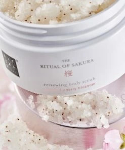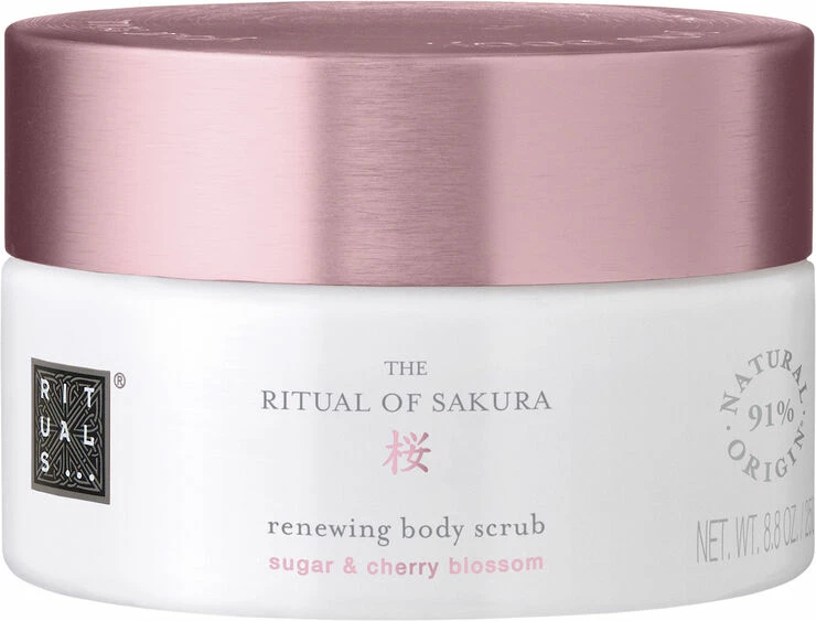 Body scrub på basis af en luksuriøs kombination af sukker og vidunderlige blødgørende olier for blidt og intenst at fjerne døde hudceller. Specielt udviklet til at nære og revitalisere selv den allertørreste ud. Beriget med nærende Rismælk og blomsterduft af Kirsebærblomst. Bruges en eller to gange om ugen for blød, sund hud med fin glød.