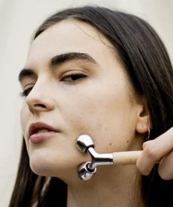 Den dobbelte massagebold er ideel til den ovale del af ansigtet, øjenbrynsbuen og kindbenene takket være dens palperende og drænende bevægelse.