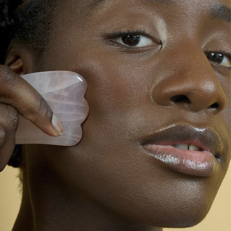 Brugt dagligt sammen med din creme, hjælper Quartz Gua Sha til at :