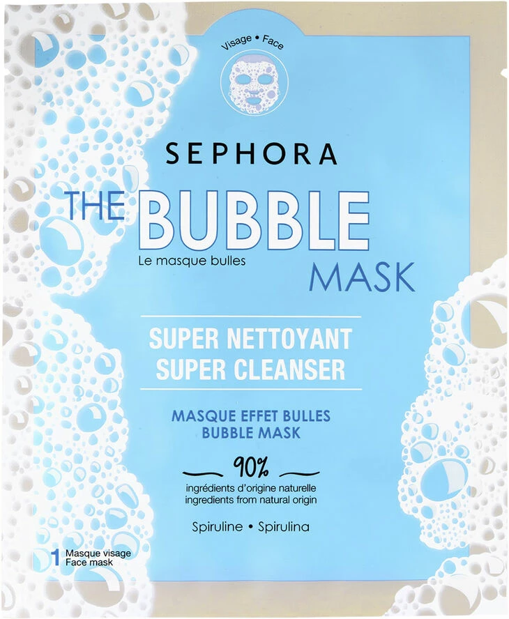 Sephora Collection Bubble Mask er formuleret med 90% naturlige ingredienser og er beriget med spirulina af naturlig oprindelse.