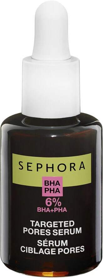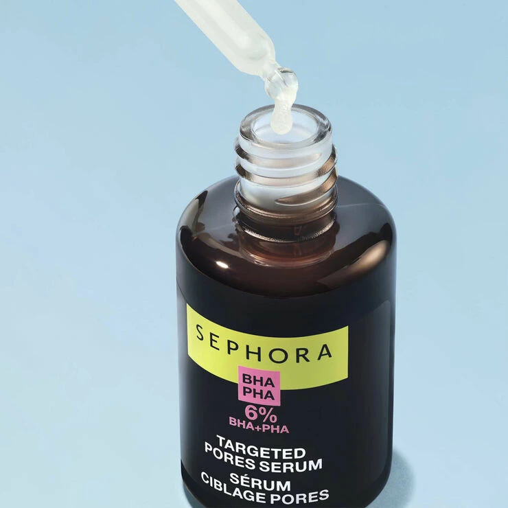 SEPHORA COLLECTION Targeted pores serum med 6% BHA (salicylsyre) og PHA er din nye go-to serum for matteret hud, rensede porer og en synligt mindre fedtet hud. Allerede fra første påføring bliver huden udglattet og matteret. Efter 28 dages anvendelse af vores Pores Serum med BHA og PHA er porerne synligt reducerede, opstrammede, og hudens struktur er glattere. Formlen absorberes hurtigt og er en formidabel allieret, når det drejer sig om at forbedre porernes udseende, inden der påføres en fugtighedscreme.