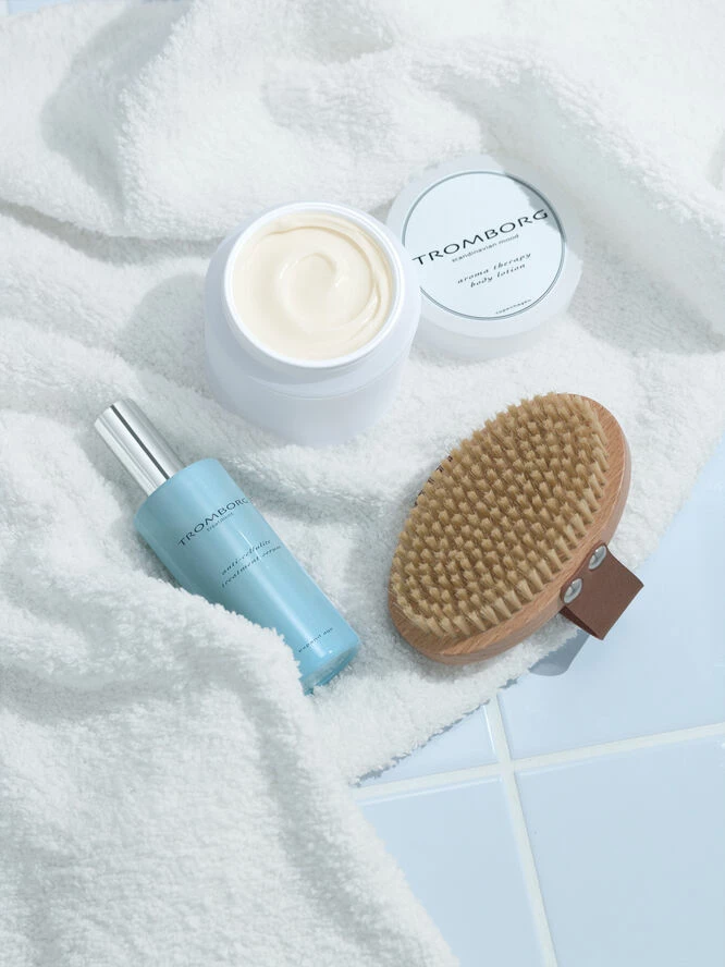 De æteriske olier bibringer en lækkeraroma og får huden til at fremstå opløftet og silkeblød.