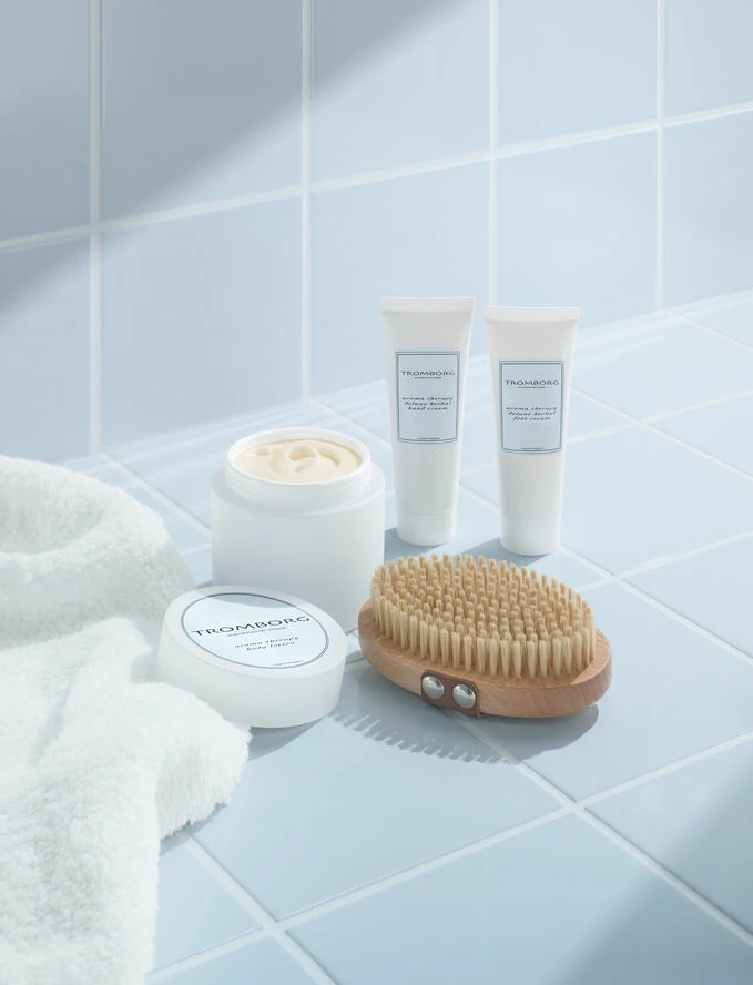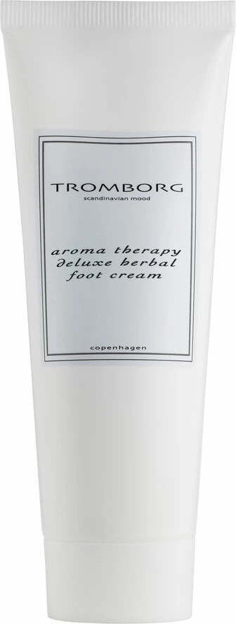 Fodpleje er en vigtig del af din hudplejerutine og Tromborgs nye luksus fodcreme, Aroma Therapy Deluxe Herbal Foot Cream med den fineste duft af rosmarin og mynte, giver de skønneste fløjlsbløde fødder. Aroma Therapy Deluxe Herbal Foot Cream er fyldt med naturens egne mirakler, så huden på fødderne bliver smidig, babyblød og lækker at røre og se på. Cremen kan anvendes efter sol, da den har kølende effekt. Alle de tilsatte økologiske olier og ekstrakter fugter, reparerer og heler, så huden synes og føles velplejet.