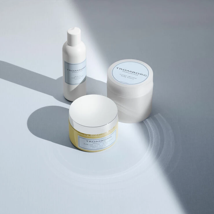 Man kan hjælpe et sundere udseende på vej ved at eksfoliere huden forsigtigt med Tromborgs Body Salt Scrub. Fjerner døde hudceller, så huden får et mere levende skær. Et hjemme-spa-produkt, som efterlader huden blød som hos en nyfødt. Body Salt Scrub er en blidt eksfolierende salt scrub med fint salt fra Det Døde Hav, mandelolie og æteriske olier. Den velduftende blanding af salt og olie masseres på huden i badet