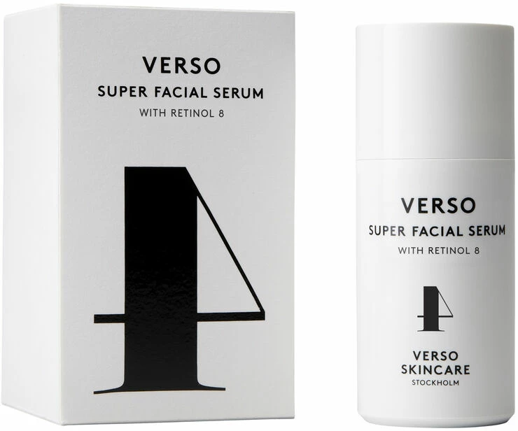 En helende og styrkende anti-age serum med en høj dosis Retinol 8 – et stabilt A-vitamin kompleks, der er otte gange mere effektivt end standard Retinol. Øger hudens naturlige produktion af kollagen. Super Facial Serum har en maksimal effekt på huden og forbedrer teksturen samt reducerer rynker og misfarvninger. Kan bruges både dag og nat og kombineres med Verso Day og/eller Night Cream eller anvendes alene. Indeholder endvidere aminosyrer, gurkemeje- og peber-ekstrakt samt hyaluronsyre.